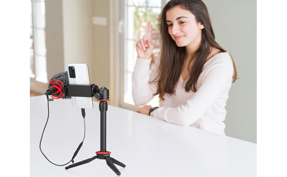 Kit de vídeo universal para smartphones.Ideal para Youtuber, vlogger, videographerSe adapta a la mayoría de smartphonesCardioid escopeta microfonoTilt y giratorio bola cabeza controlIncluye micrófono de condensador BY-MM1, abrazadera para smartphone, cabeza de bola, tubo de extensión, mini trípode, abrazadera con soporte de zapata fria
