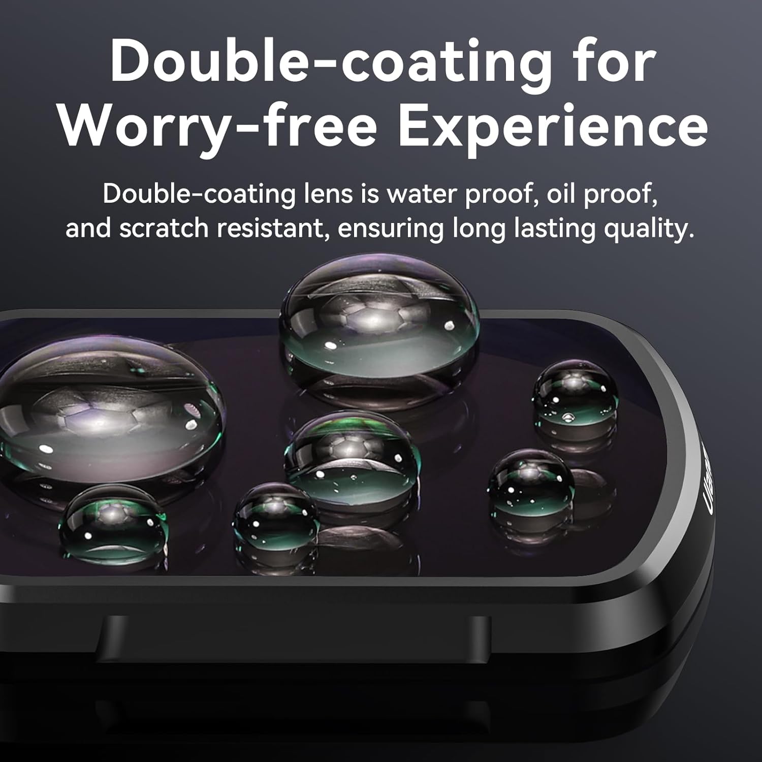 Revestimiento múltiple para una experiencia sin dudas: con 30 capas de revestimientos multifuncionales en ambos lados del vidrio óptico HD, lo que logra un rendimiento increíble en repelente al agua, resistente a los rayones y a prueba de aceite, asegurando una calidad óptica duradera en entornos desafiantes y fácil de limpiar.