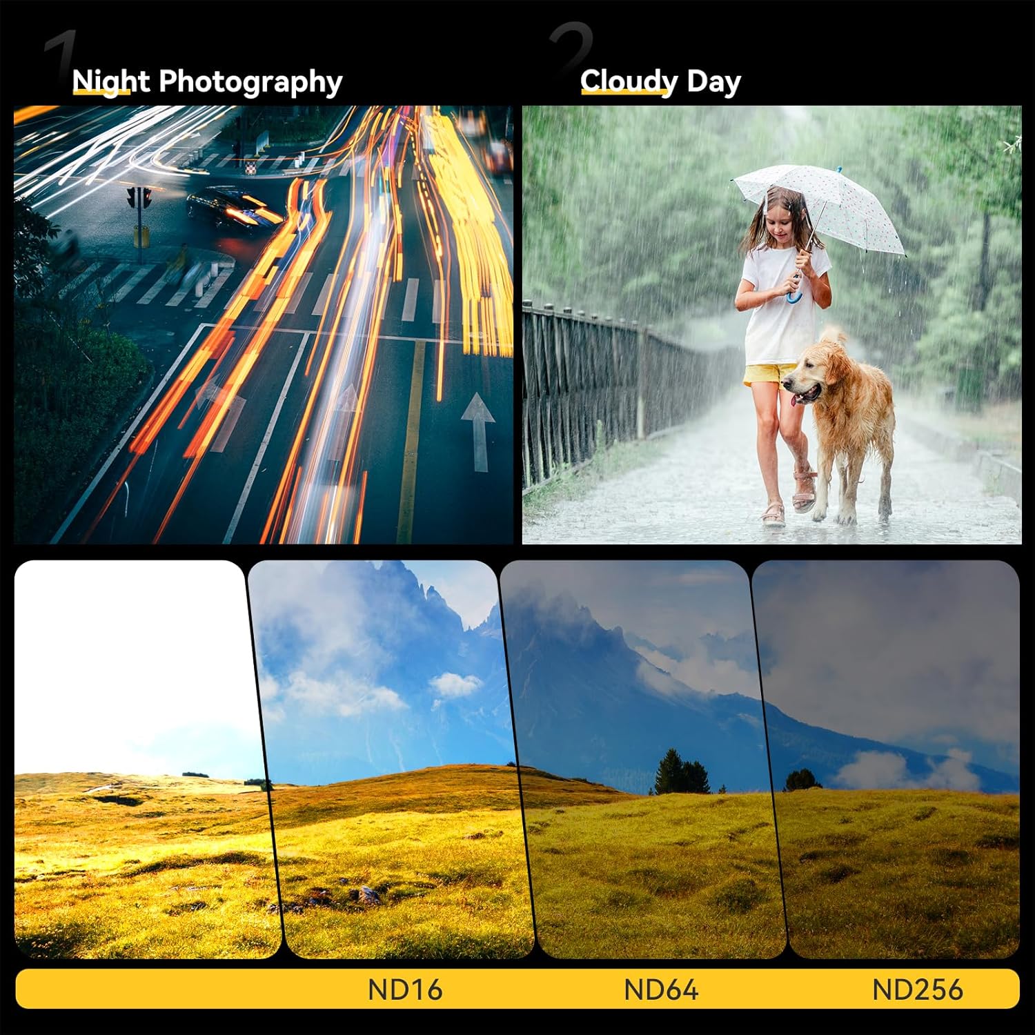Exposición equilibrada para imágenes superiores: los filtros ND16, ND64 y ND256 ofrecen un control preciso de exposición para DJI Pocket 3 durante actividades dinámicas al aire última intervención, con opciones de reducción de luz de 4, 6 y 8 paradas, respectivamente. Evita eficazmente la sobreexposición y eleva la calidad de la imagen en una gama de condiciones de luz solar.