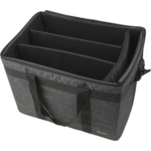 La bolsa para kit de luces ikan IBG-1000-3L cuenta con un bolsillo de malla para los accesorios incluidos y se adapta adecuadamente a 3 luces ID1000 y las inserciones acolchadas ajustables se pueden configurar para adaptarse a las necesidades del video profesional. Su diseño de nailon fuerte y duradero protege y asegura cada luz individual en la bolsa y las mantiene libres de rayones. Esta bolsa está equipada con cremalleras dobles y una correa a presión para mayor seguridad. Además, las patas de goma antideslizantes de la bolsa IBG-1000-3L proporcionan una base estable para las luces. Las asas laterales acolchadas con plástico y la correa para el hombro acolchada de alta resistencia brindan múltiples opciones de transporte para su comodidad.