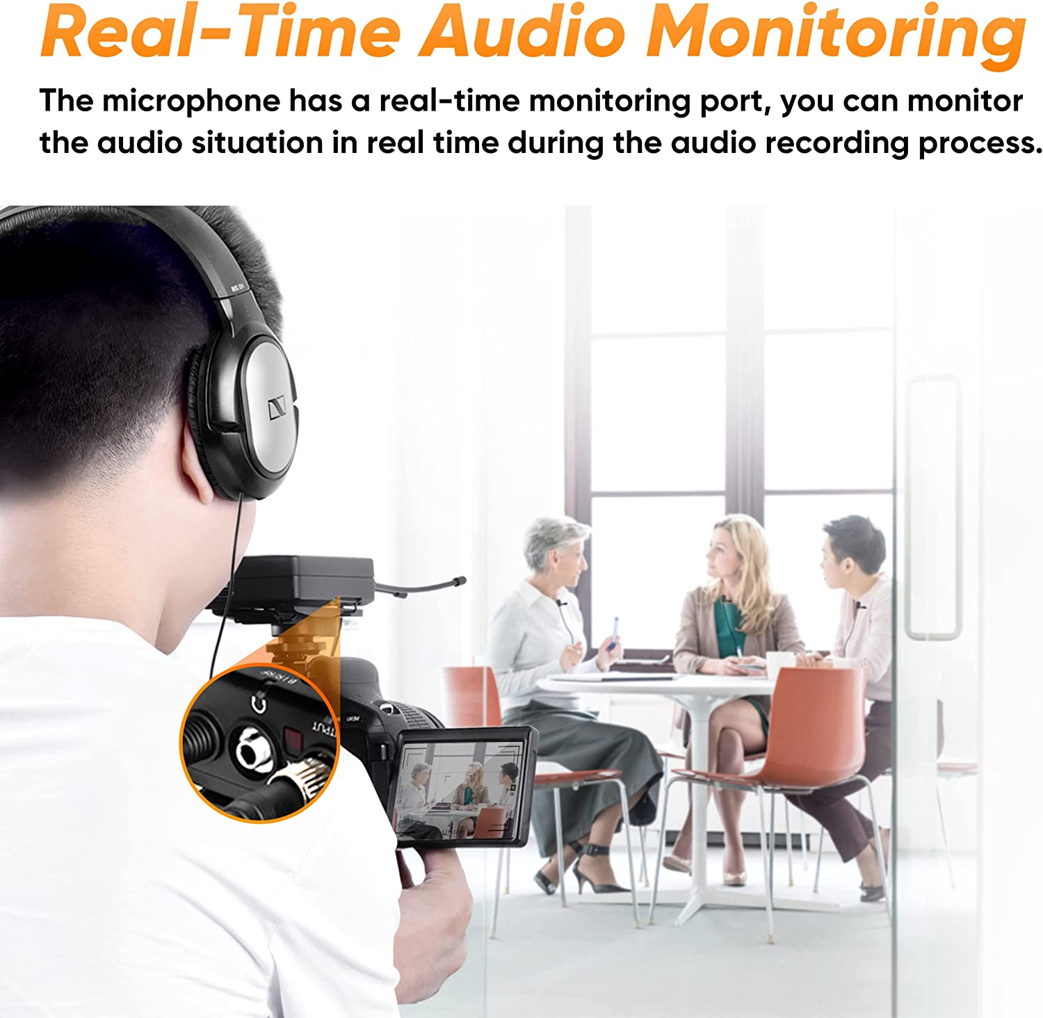 El CVM-WM200A incluye dos cables de audio, uno de 3,5 mm y otro de 3,5 mm a XLR, para conectar la salida de línea de 3,5 mm con volumen ajustable del receptor a la entrada de su cámara, DSLR o videocámara. Se proporciona un puerto separado de 3,5 mm para monitoreo en tiempo real a través de auriculares.