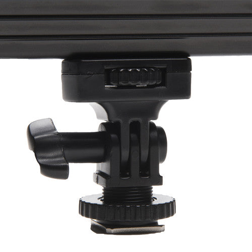 La luz LED On-Color On-Camera On-Camera On-Deyx 240 de ikan tiene una salida de aproximadamente 250W a plena potencia, pero consume solo 30W. Es una luz bicolor que le permite ajustar la temperatura de color de la salida del accesorio de 3200 a 5600K y cuenta con un CRI de 95 y TLCI de 96 tanto en tungsteno como en luz diurna. El encendido / apagado, la atenuación y la temperatura de color se controlan desde la parte posterior del accesorio a través de cuatro botones. Se comparte una pantalla LED de dos dígitos para atenuar y temperatura de color, con una luz indicadora que le informa de qué característica está controlando.El accesorio requiere dos baterías de la serie L y se envía con dos baterías que son el equivalente a una batería de la serie L 550 y un cargador de batería dual. También puede alimentar el accesorio desde una fuente de alimentación de CA opcional que emite de 13 a 17 VCC. La difusión incorporada ayuda a prevenir el efecto de múltiples sombras proyectadas que afectan a algunas luces de tipo matriz LED. Un orificio de montaje roscado de 1/4 "-20 incorporado y el adaptador de zapata fría incluido permiten montar el accesorio en su cámara. También se incluyen un mango extraíble y un adaptador de soporte de luz extraíble, que se montan a través del orificio de montaje roscado de 1/4 "-20.ControlEn la parte posterior del accesorio hay cuatro botones:Encendido/apagadoMásMenosM - seleccionarEl botón M permite cambiar entre la atenuación y la temperatura de color. Un indicador LED se enciende para indicar qué característica del accesorio está controlando. Una pantalla de visualización de dos dígitos indica atenuación de 10 a 99% y temperatura de color de 32 a 56.El accesorio tiene dos ranuras para baterías de tipo L-Series, así como un puerto coaxial para la alimentación de un adaptador de CA opcional. Al alimentar con baterías, debe usar dos baterías para alimentar el accesorio, no funciona con una sola batería