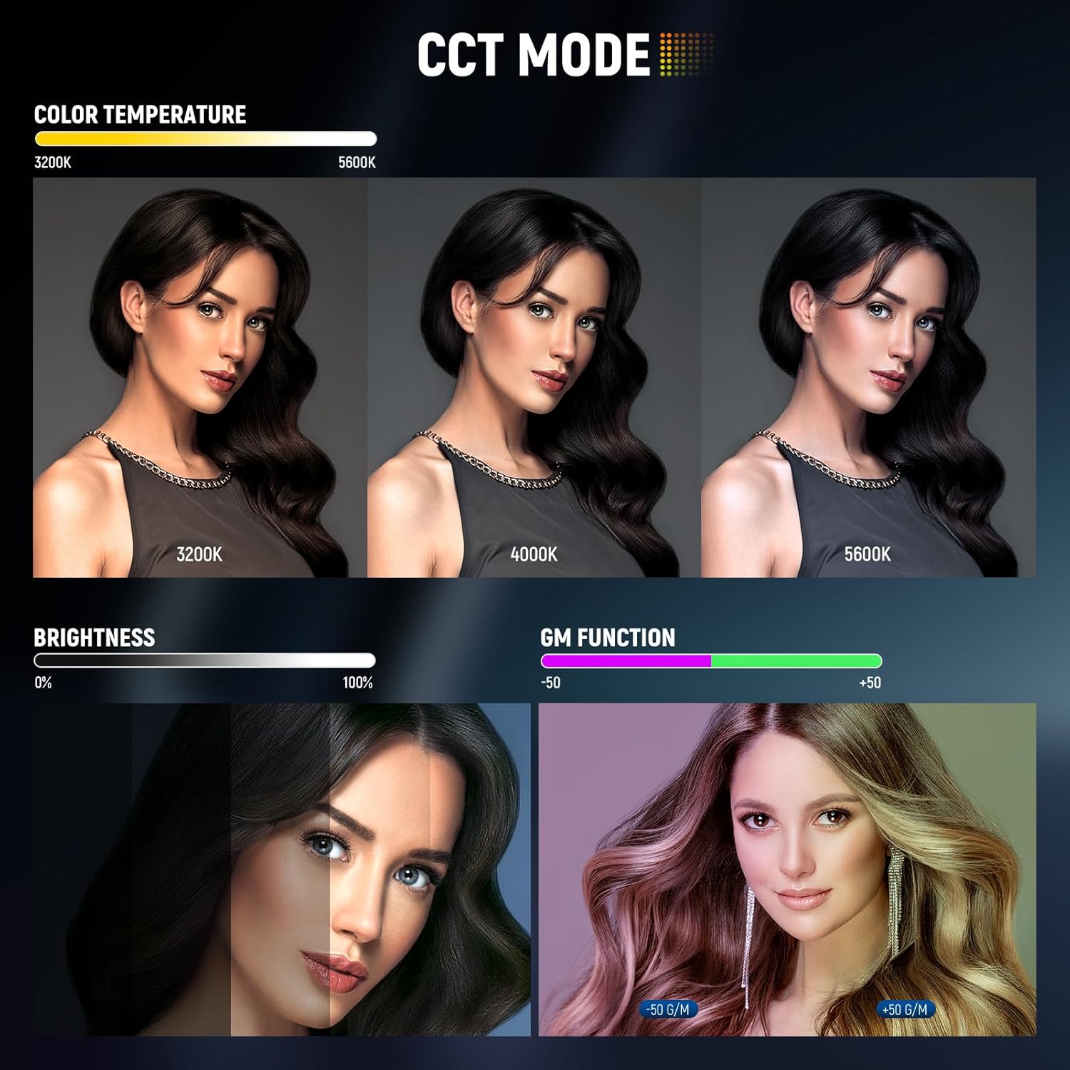 【Luz bicolor con corrección GM: en modo CCT, puedes obtener una temperatura de color variable de 3200 K-5600 K y una atenuación sin parpadeo del 0 al 100% para maquillaje, llamadas de zoom o fotografía macro. La función GM (verde/magenta) ayuda con la corrección de color y te permite obtener la temperatura de color precisa con facilidad. 150 LED SMD ofrecen una iluminación suave y estable y un alto CRI de 98+ ofrece una reproducción precisa del color. Utiliza la rejilla de panel para una salida enfocada y direccional.