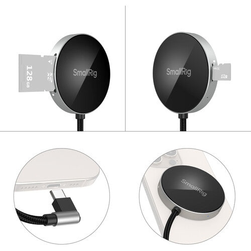 El lector de tarjetas SD 3.0 de SmallRig es un lector de tarjetas de alta velocidad diseñado para conectarse magnéticamente a un smartphone, tableta o portátil, lo que permite transferir datos rápidamente y minimizar el tiempo de inactividad durante la grabación.