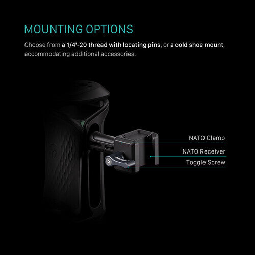 Esta empuñadura lateral Xeno negra con montura NATO de Tilta se monta de forma segura en el lado derecho o izquierdo de la jaula de la cámara, ofreciendo una mayor estabilidad en mano gracias a su abrazadera de riel NATO con bloqueo de palanca.