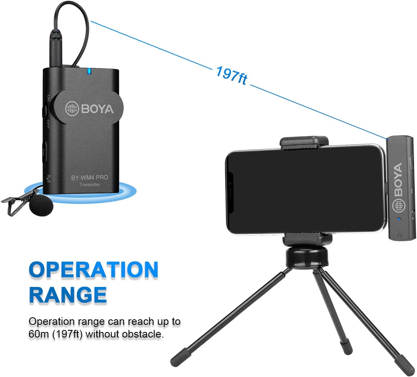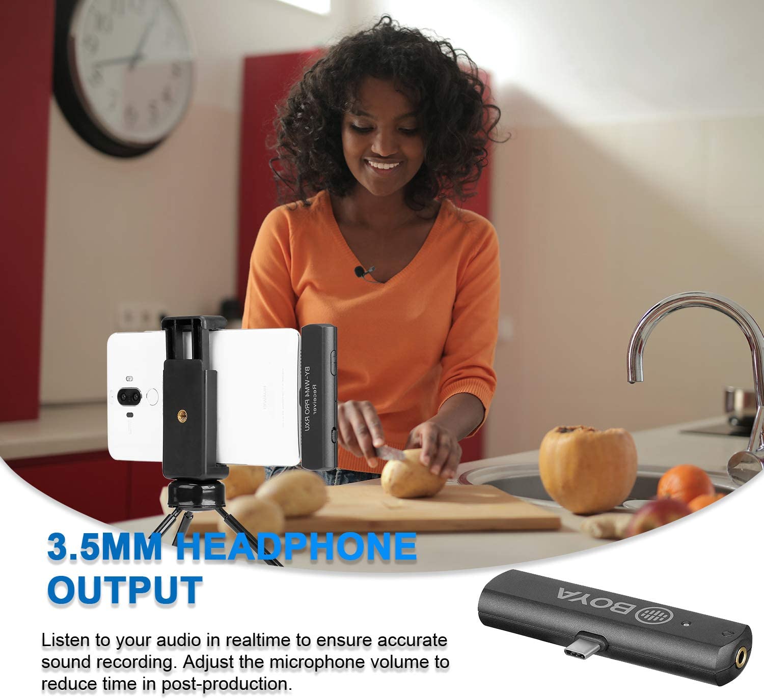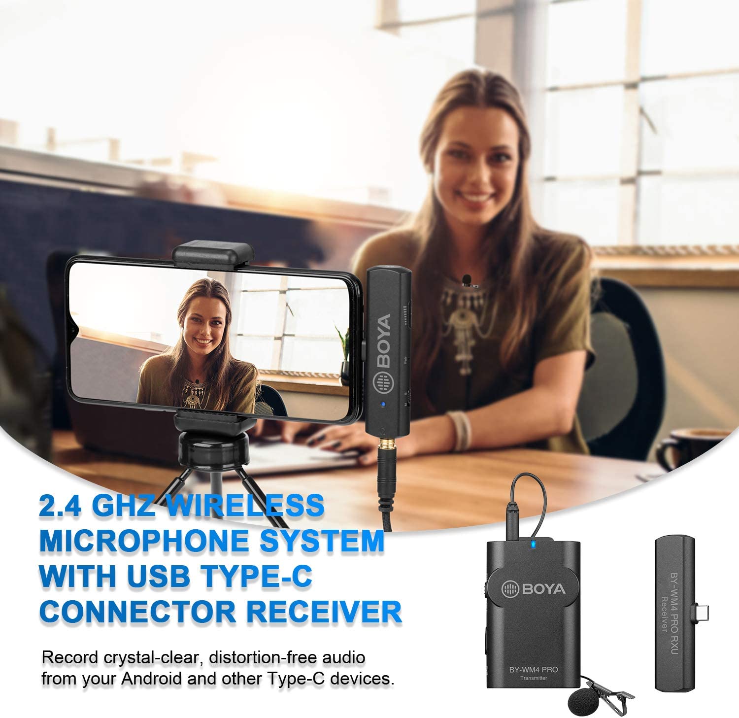 Micrófono inalámbrico digital: BY-WM4 Pro-K5 es un sistema de micrófono inalámbrico digital (un transmisor + un receptor), ideal para vloggings, podcasts, transmisión en vivo, periodismo móvil para dispositivos tipo C.
