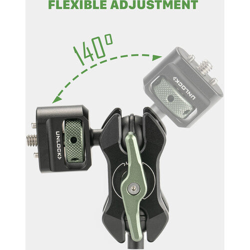Este brazo modular permite intercambiar los extremos de las rótulas con soportes opcionales, como un soporte de posicionamiento tipo ARRI, un adaptador de zapata, una abrazadera NATO y más.