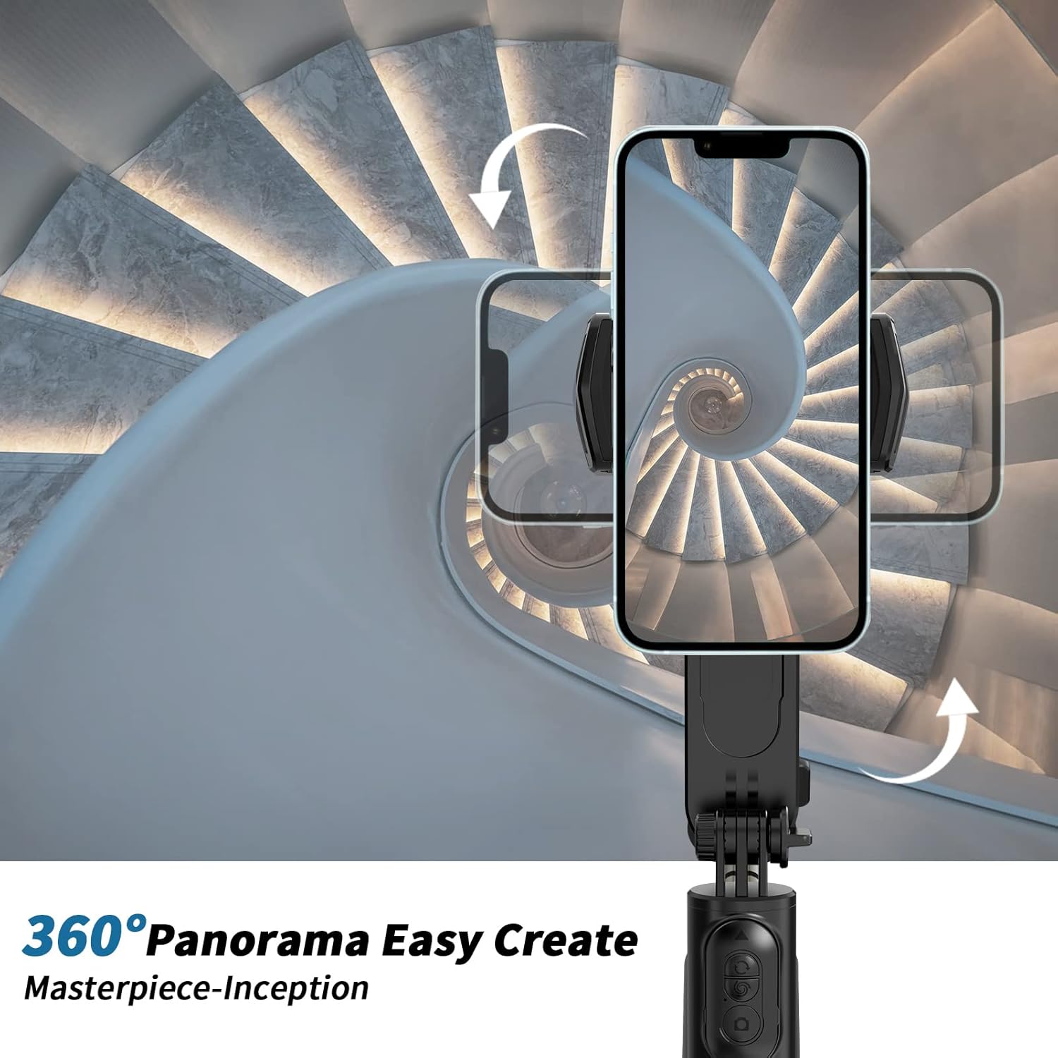 CONTROL REMOTO + MODO DREAMSTORM:Control remoto de Estabilizador para Celular cambiar entre disparo horizontal y vertical, y la rotación de 360 grados para experimentar el modo de espacio de ensueño.se puede disfrutar de la sensación de grabar películas con un solo clic en cualquier lugar.