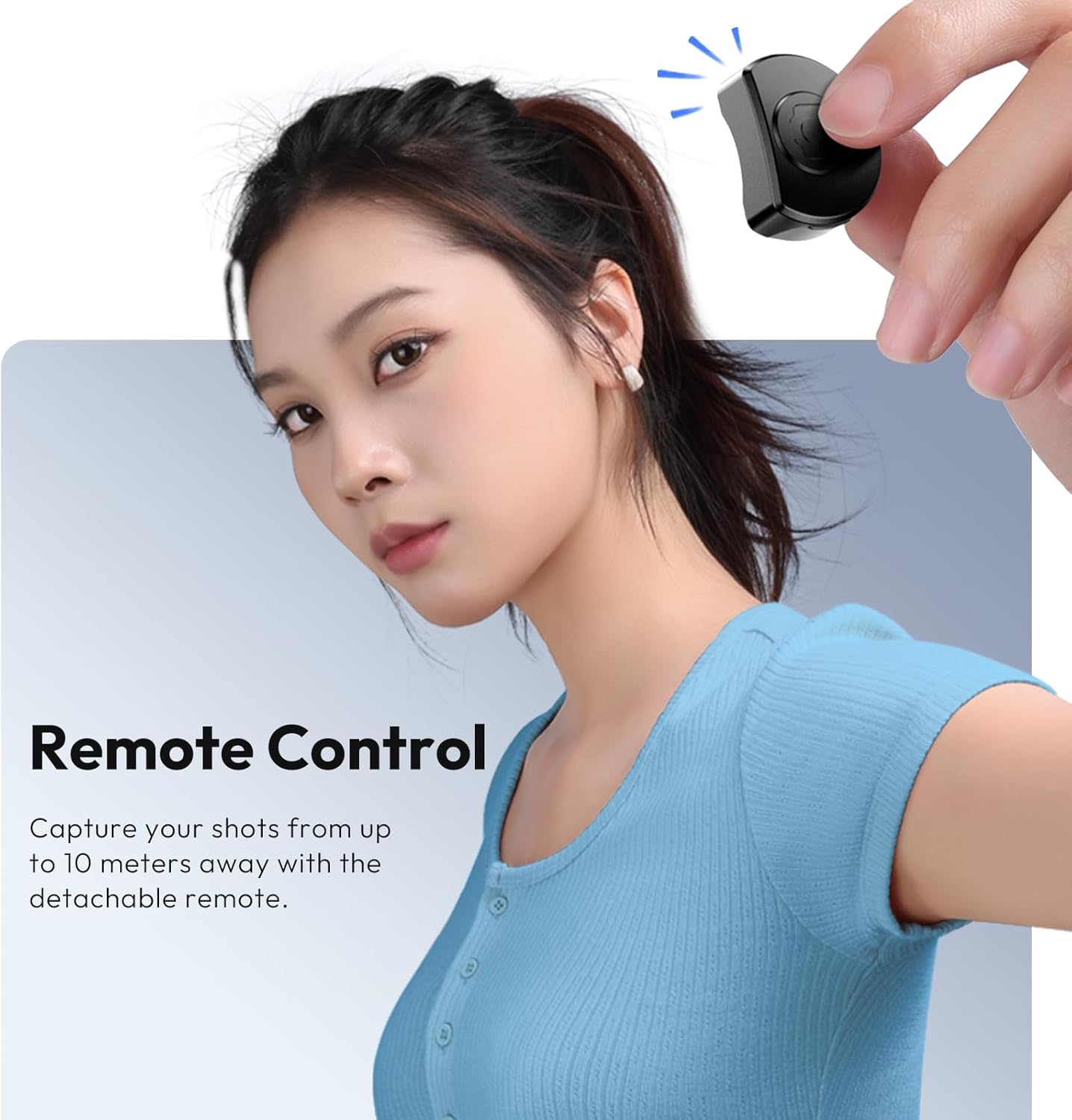 【Soporte remoto de bayoneta y alcance de 10 metros】A diferencia de los típicos palos selfie, el JJ03 incluye un diseño de bayoneta inteligente para el obturador remoto, lo que le permite fijarlo o guardarlo convenientemente. El control remoto inalámbrico funciona dentro de un rango de 10 metros, lo que le permite tomar grandes fotos en solitario con un solo clic