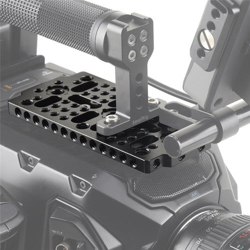 La placa de queso multiusos de SmallRig para Blackmagic URSA Mini está diseñada para fijarse a la parte superior de la cámara y ofrecer diferentes tipos de monturas para accesorios.