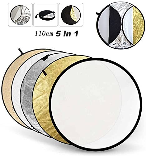 Tenemos para ti el Reflector 5 en 1, con su diseño circular lleva la luz y elimina las sombras de rostro y cuerpo de manera fácil y práctica.