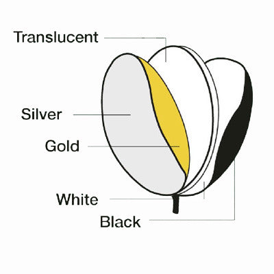- MULTI-FUNCTION: Crea reflexiones lisas e iguales; Plata para el contraste; El bloque negro bloquea la luz indeseada, o crea efectos de iluminación espectaculares; El oro crea un efecto de atardecer que hace cálidos y suaves tonos de piel que son adecuados para el retrato; El blanco produce una luz muy suave, casi sin sombra reflejada; Translúcido para una iluminación más suave sin sombra