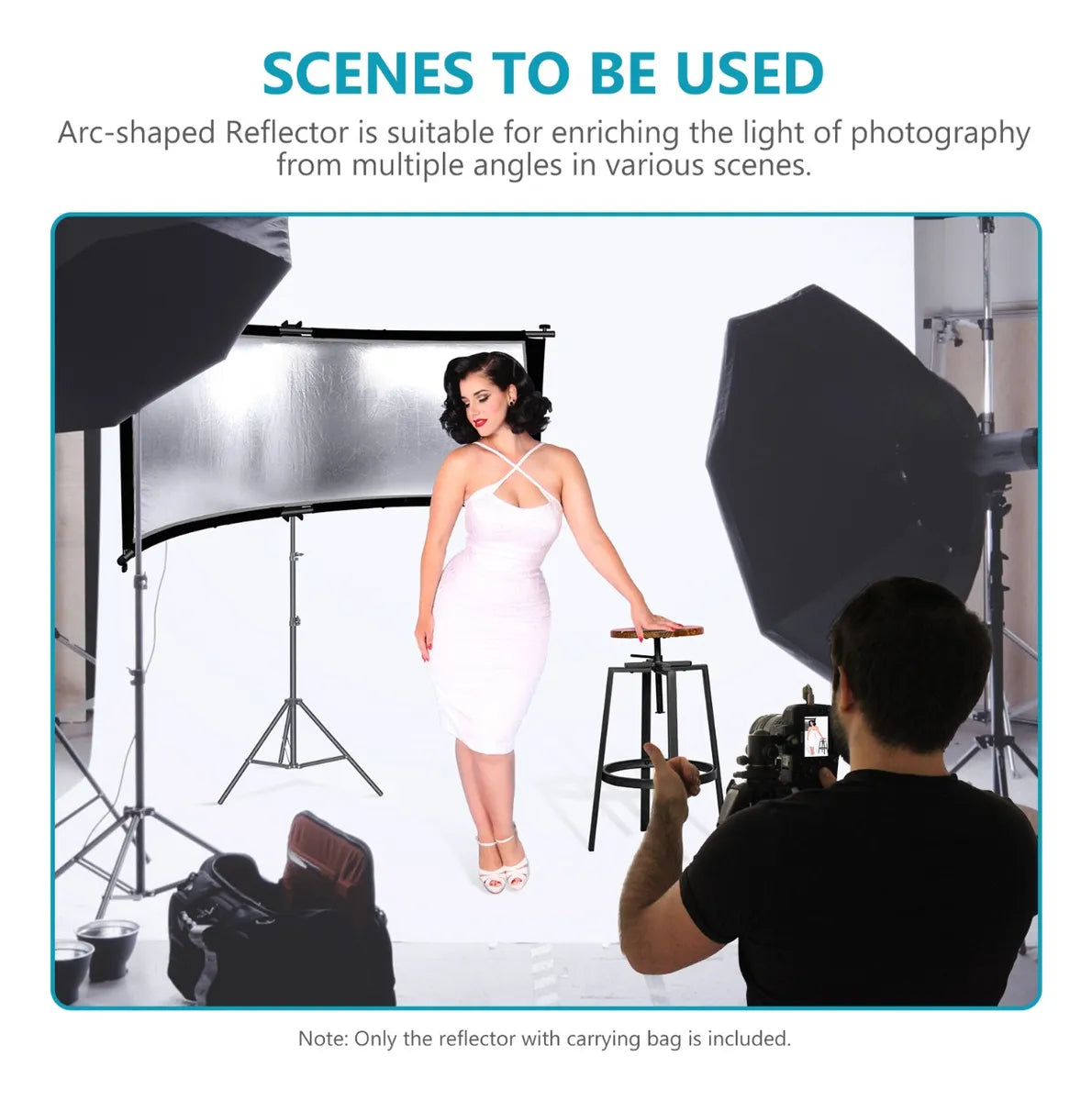Combinando la iluminación de la cubierta con las luces de captura más únicas y de aspecto natural, este Reflector es imprescindible para cualquier fotógrafo que haga retratos. A diferencia de los reflectores de estilo de panel tradicional que dejan luces inusuales en los ojos, este reflector sigue la curvatura natural de los ojos dando vida a sus sujetos.