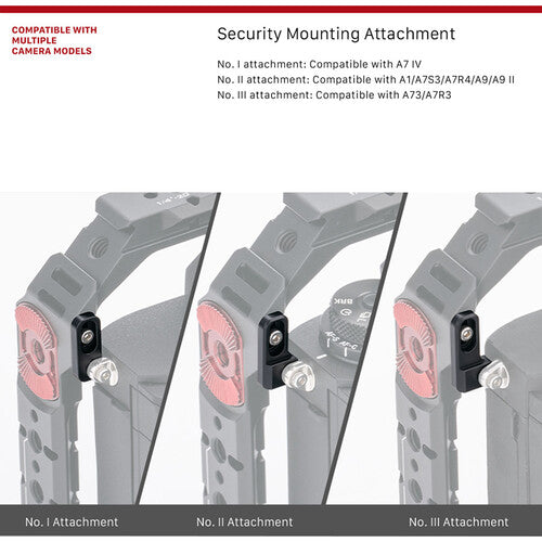 Esta jaula de aluminio, de ajuste perfecto, está diseñada para no obstaculizar el acceso a las funciones, pantallas, puertos ni batería de la cámara. La cámara se fija a la jaula mediante un tornillo de montaje de 1/4"-20.