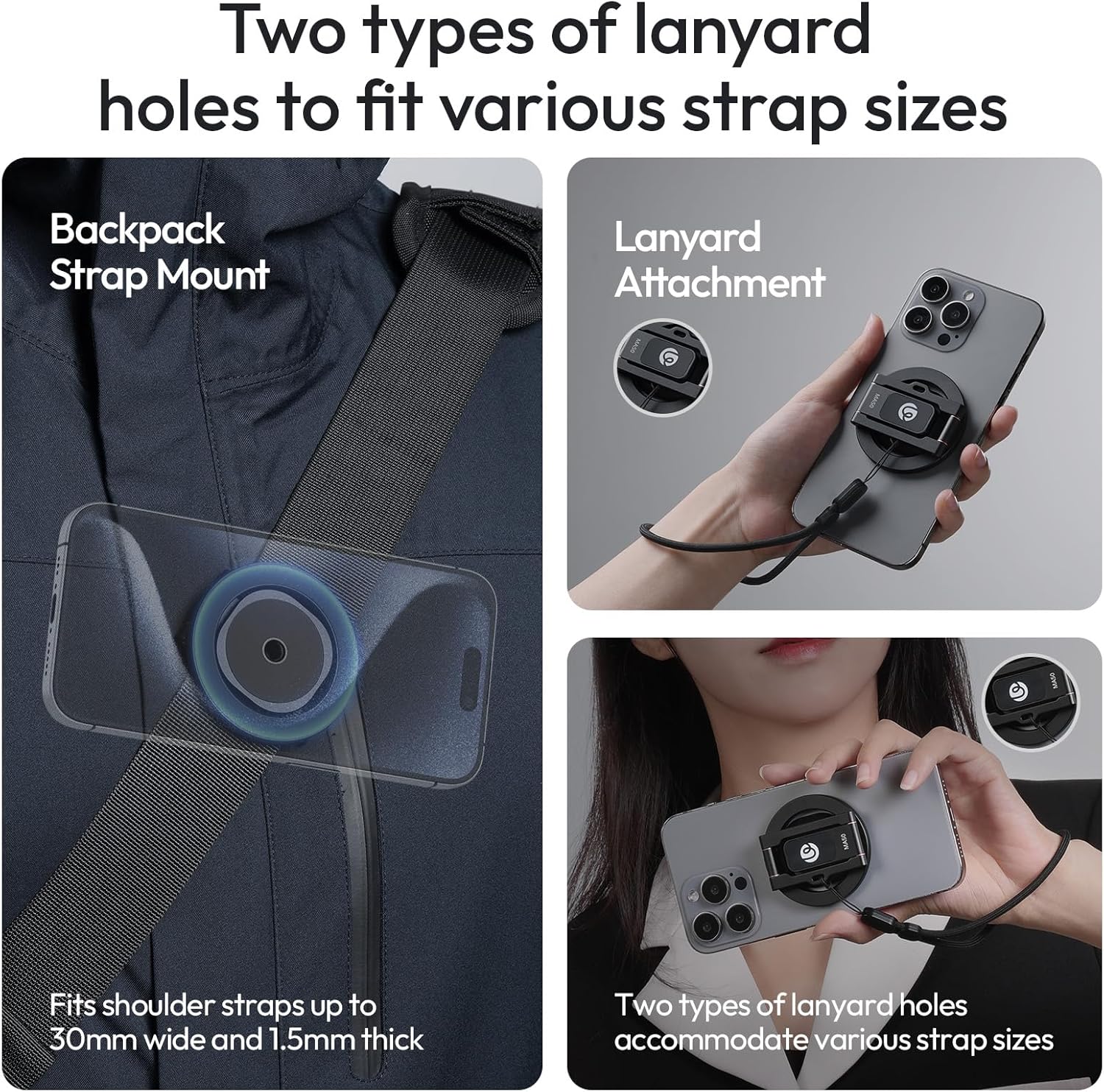 El soporte para teléfono Ulanzi MA50 cuenta con un potente anillo magnético de 16 N para la alineación rápida de MagSafe. El imán de base único permite la adsorción del soporte del teléfono en cualquier orientación, desbloqueando una aplicación versátil de escena. Perfecto para computadora, oficina, gimnasio y montaje de teléfono. Este soporte para teléfono no está diseñado para usarse en bicicleta, moto o coche.
