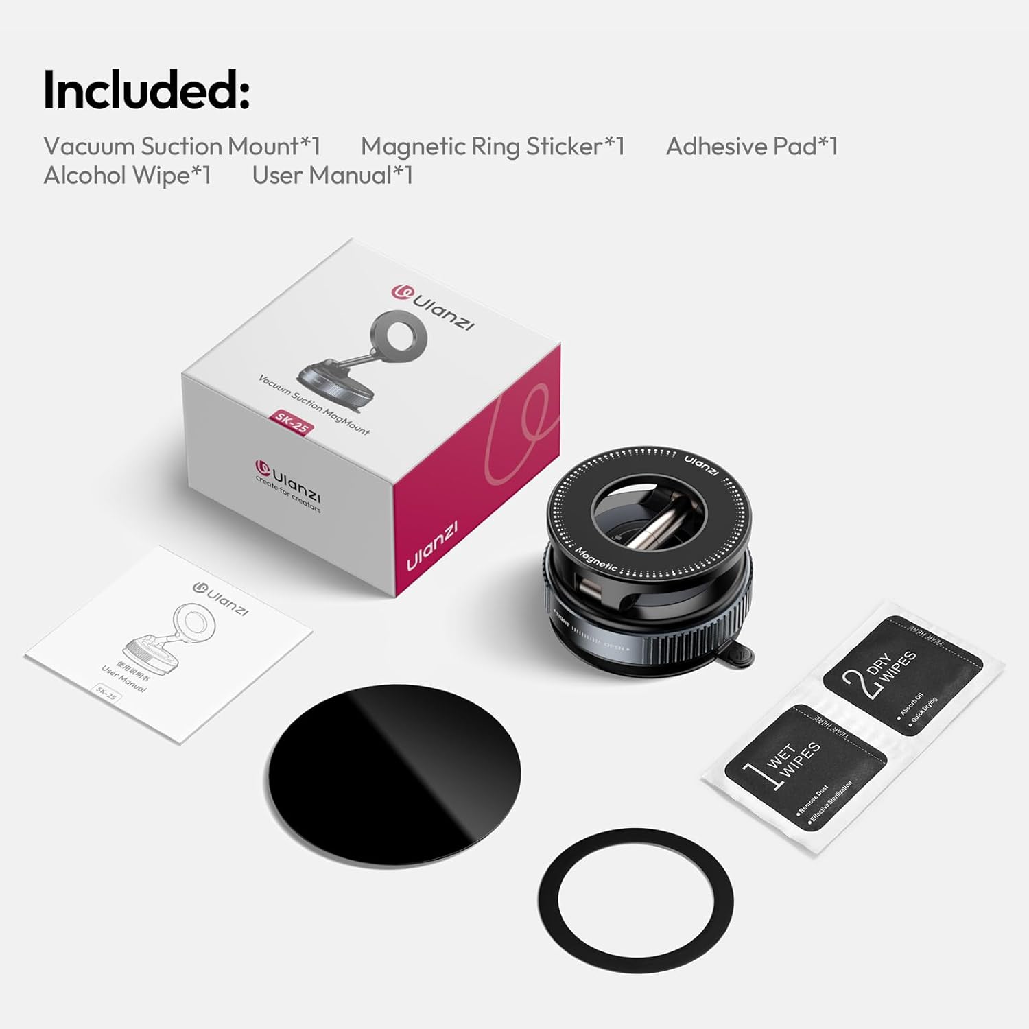 Rotación de 360° y ajustable: el soporte de succión al vacío para teléfono SK-25 SK-25 ofrece total flexibilidad con rotación de 360°, inclinación y movimiento suave, lo que te permite ver tu pantalla desde cualquier ángulo con facilidad.