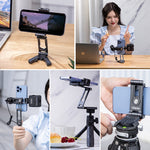 Despliégalo y separa las patas para crear un soporte de escritorio estable para conferencias telefónicas, vlogs y transmisiones en vivo.