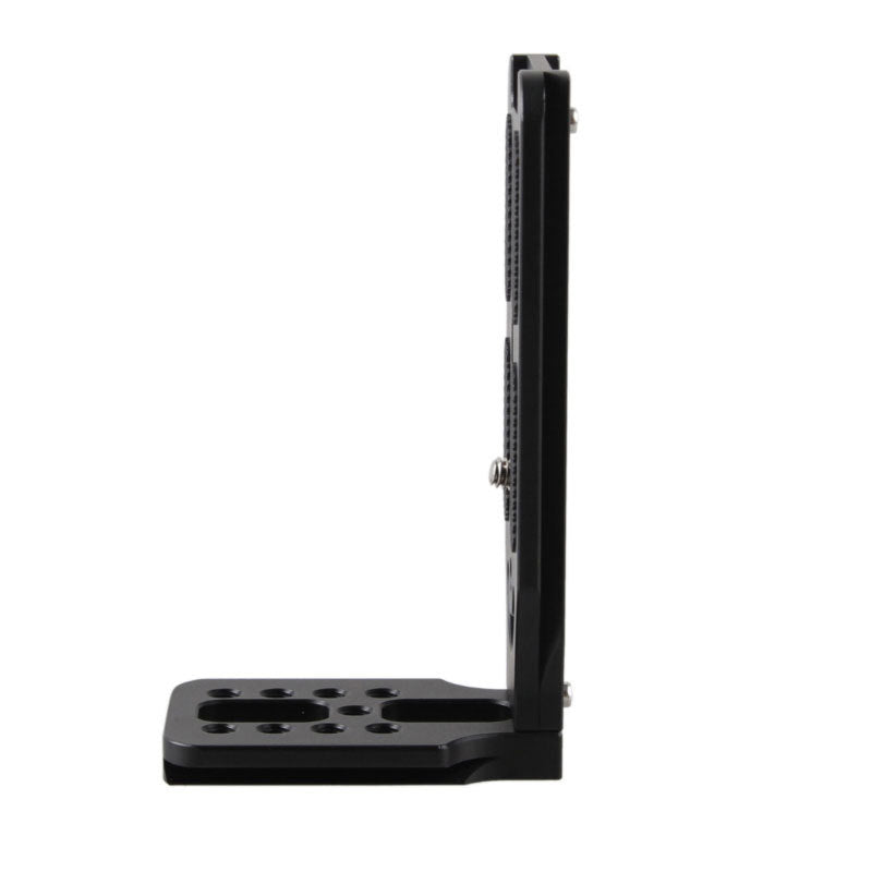 Para una conexión directa a accesorios como un trípode o correas que cuentan con soportes de 1/4 "-20, la parte inferior de la placa en L multicámara está roscada con una rosca hembra de 1/4" -20 para accesorios. Además, los orificios de iluminación cortados en toda la placa en L ayudan a minimizar su peso.